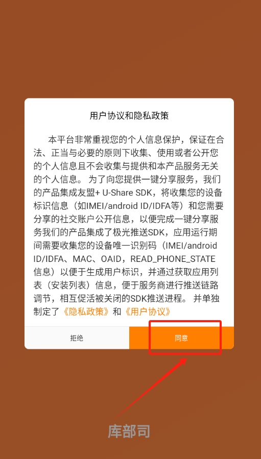 1、打开后会看到软件协议,点一下同意,不然没法继续往下用软件的功能哦。