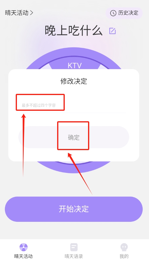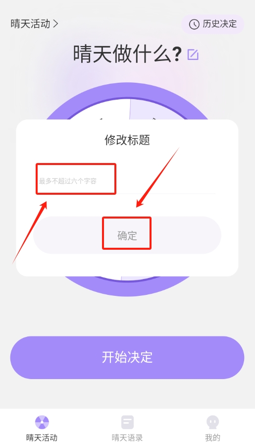 3、使用幸运转盘时,进入对应板块输入选项,转动转盘就能得到结果,帮你快速做决定。