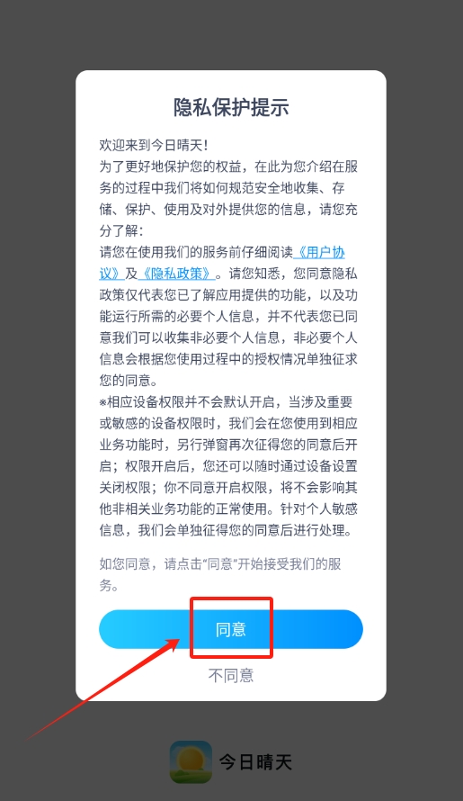 1、打开软件后,先浏览一下软件协议内容,确认没问题就点击同意,这样就能顺利进入软件,开始使用里面的各种功能了。