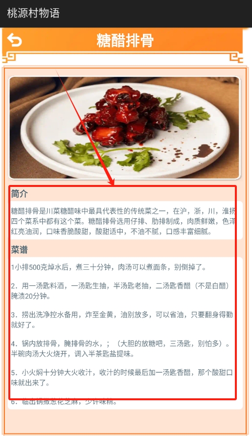 4、进入美食页面后,可以查看这道美食的详细简介,包括由来和特色,还有具体的做法步骤可以学习。