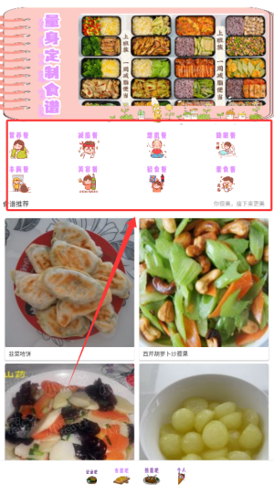 1、系统将根据年龄与体质推荐专属食谱,每日更新减脂菜谱与营养搭配方案,帮助用户合理规划三餐。