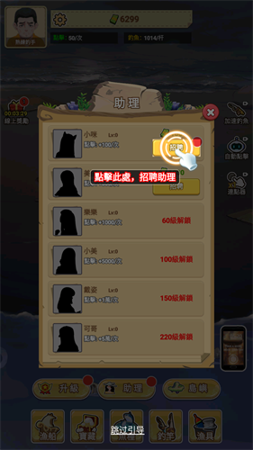 5、主角等级达到20级之后即可招聘助理,进一步提高收益。