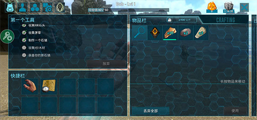 3、这里以单人模式为例,进入游戏后,画面右上角会有相应任务指引,玩家需要通过收集资源的方式制作不同道具完成生存;