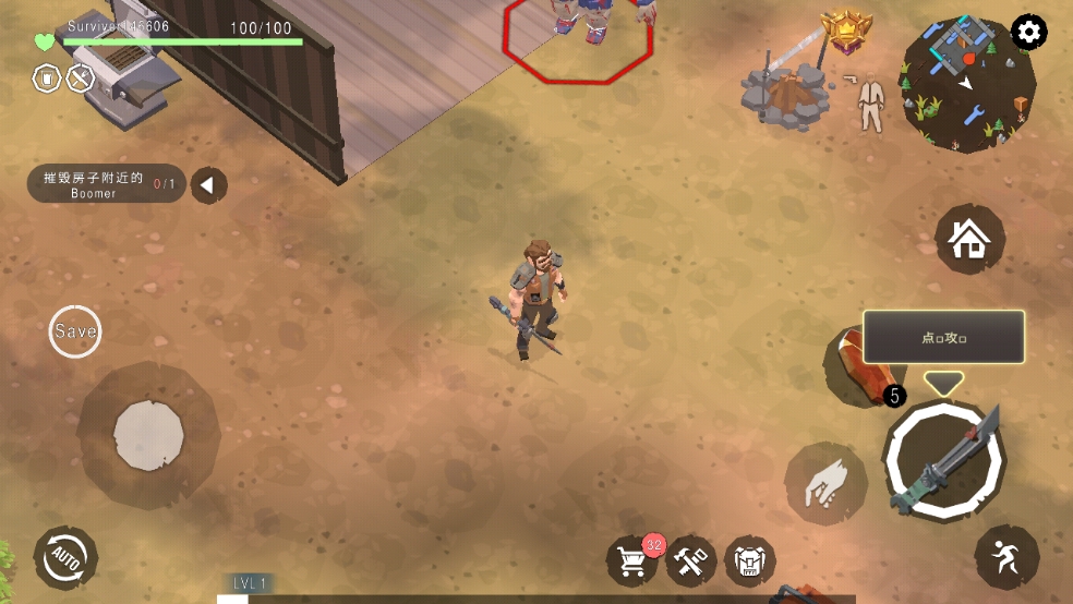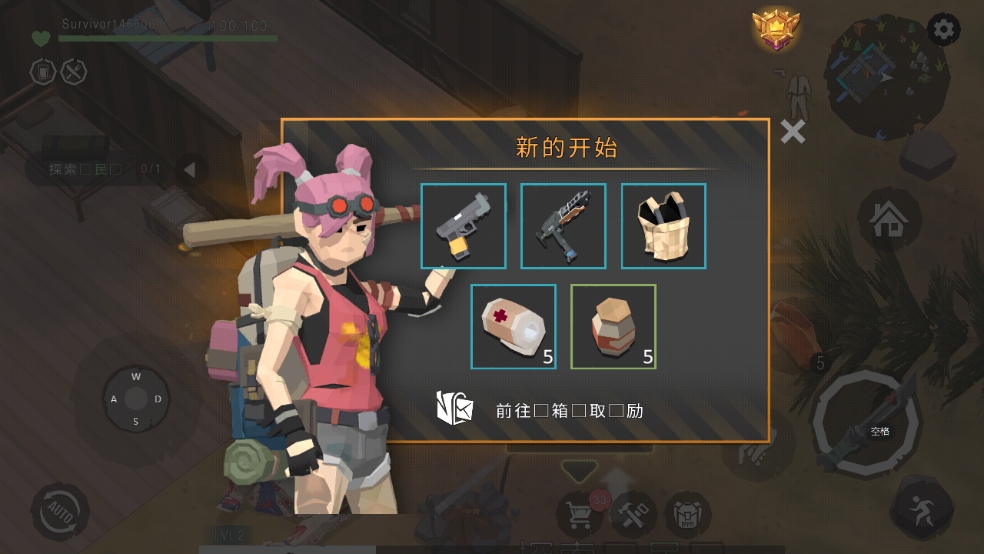 2、选择好形象后就进入游戏了,可以看到俯视视角的生存冒险之旅;