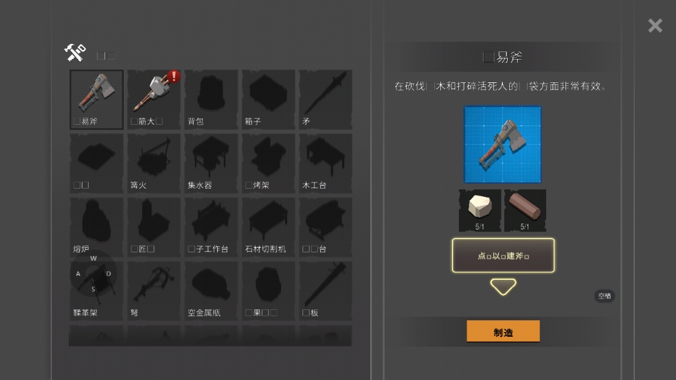 3、玩家需要先打开合成列表,利用资源来合成工具帮助自己生存;