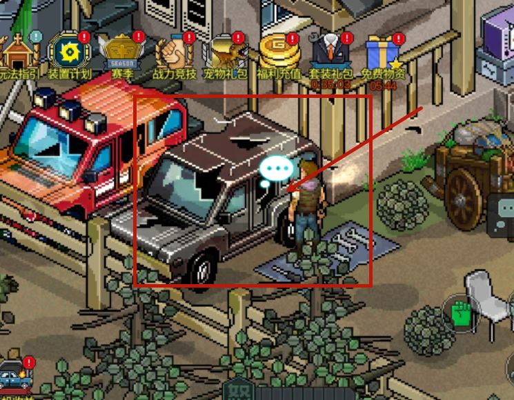 末日游商:吉普车旁的末日游商提供各种道具购买,包括配件箱、宠物箱、晶石和加速道具等。