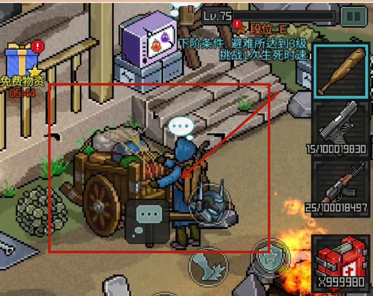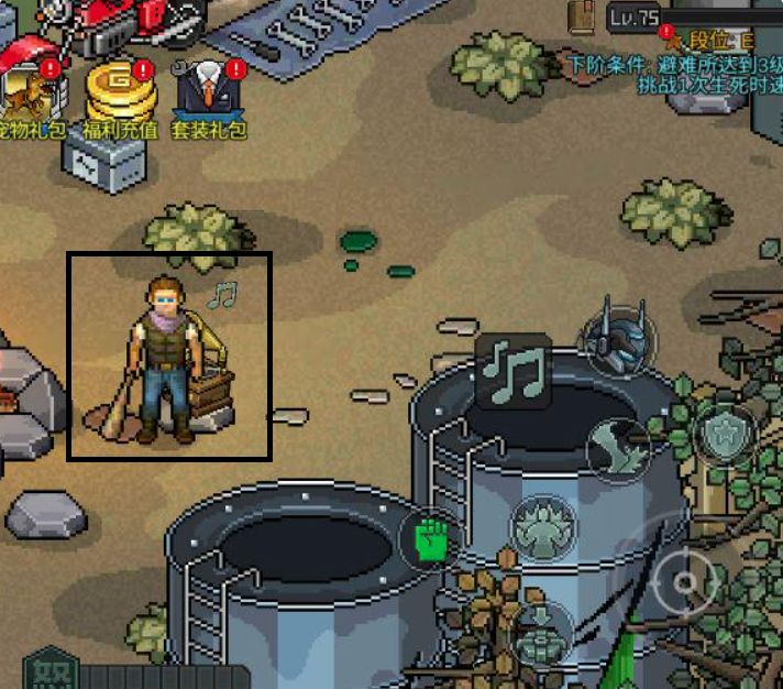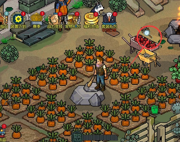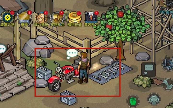 求生专家:区域中的男性NPC,即贝爷(大叔的侄子),可能提供领取道具的服务。右上角还有苹果树和一位幸存女性NPC,但目前没有特定功能。