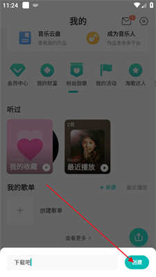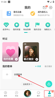 1、在我的中点击【创建歌单】。