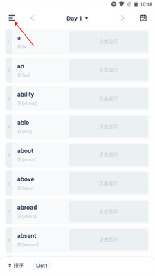 1、首先打开炭炭背单词,点击右上角类似三的图标。