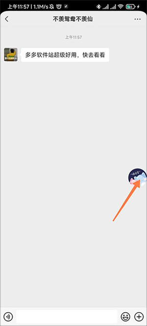 3、回到微信,现在可以看见有人给我们发了信息,复制好信息点击手机边上的悬浮窗。