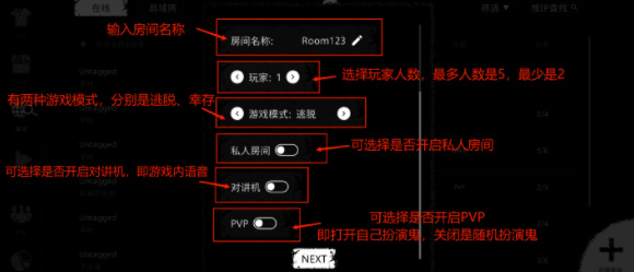 2、接着可以从左边的房间和好友右边的创建来进行联机,房间联机能够和陌生人联机游玩。