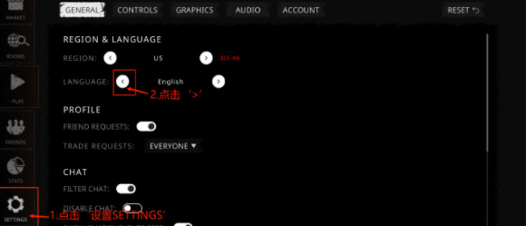 2、如果开局每设置成中文,玩家可以点击左下角的齿轮进入设置按键,然后在general页面,将语言设置成中文。