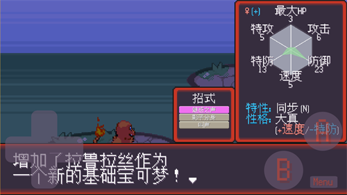 5、收服宝可梦后可以查看宝可梦的个体值、特性以及性格,如果是重复的宝可梦,则会根据历史数据保留个体值最大值;