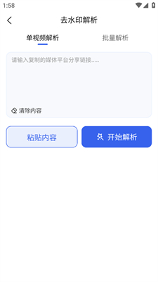 1、视频有水印就将视频链接复制到app内解析去水印,可以批量解析。