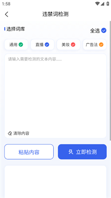 -提供违禁词检测功能,检测直播、美妆、广告法和平台的限制词,查一查更放心。