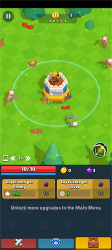2、随着关卡的推进,敌人的数量会逐渐提升,同时需要玩家提升血量与防御力应对不同怪物;