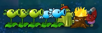 3、完成选择后正式开始战斗,玩家将用当前的植物与同一行出现的僵尸敌人进行对抗;
