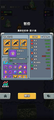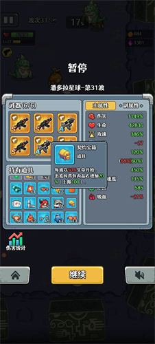 4、还有一个比较省流的小技巧,选择近战武器,多拿加护甲的道具和吸血戒指,boss房间远离boss,等刷新小怪,以此来多拿箱子。