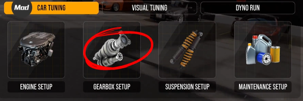 3、在车辆设置界面,选择GEARBOX SETUP选项;