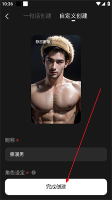 3、提供一句话创建和自定义创建两种方式,输入一句话点击生成角色。