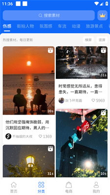 提供丰富、精美的视频素材,如原创切片素材、图文、模版、分镜头等等。