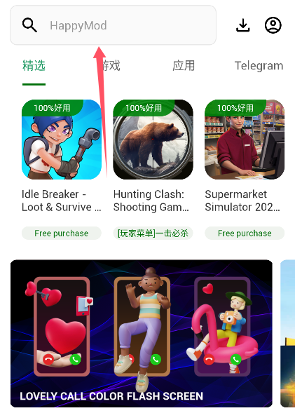 1、首先进入happymod首页,在顶部可以看到搜索入口。