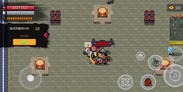 2、游戏采用经典像素风格,操控角色展开射击冒险,在地牢进行激烈的射击。