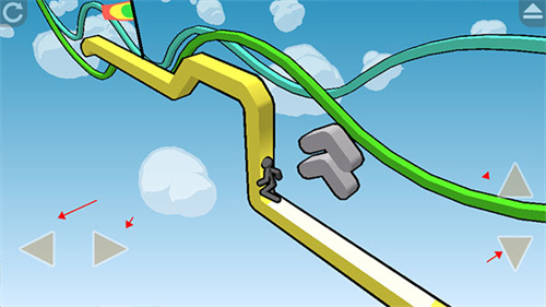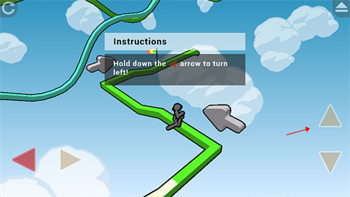 2、游戏以虚拟按键的形式操作,左右方向键控制角色的方向移动,上下键控制角色跳跃或是下蹲;