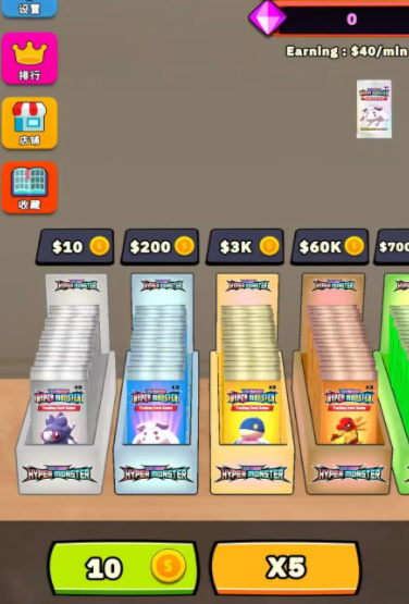 4、3D的画面风格和视角,每张卡片都有专属价格,还能进行售卖与购买。