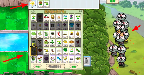 1、进入关卡之后,根据的僵尸来从各种植物内挑选,每个关卡都可以选择多个植物进行搭配。