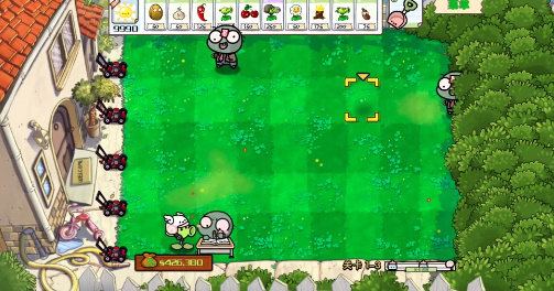 3、僵尸会从随机的路线进攻,通过种植攻击性的武器来对抗。