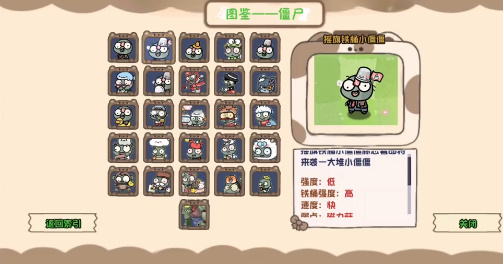 7、可以自由查看图鉴,每个僵尸和植物都有可爱的幼儿形象。