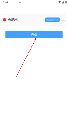 3、将需要删除的城市左边的红色按钮点一下并【完成】即可删除城市。