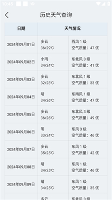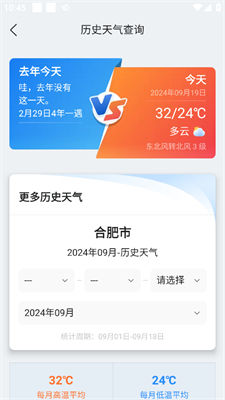 2、可以查看去年今天的天气或输入年、月日进行查询。