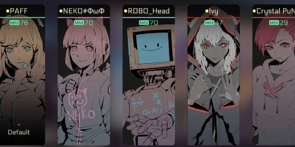 1、左右滑动后单击选择角色,点击「PLAY」后进入该角色的选曲界面。