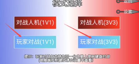 2、随后可以自由选项对战的模式,进行1v1或者3v3的格斗方式。