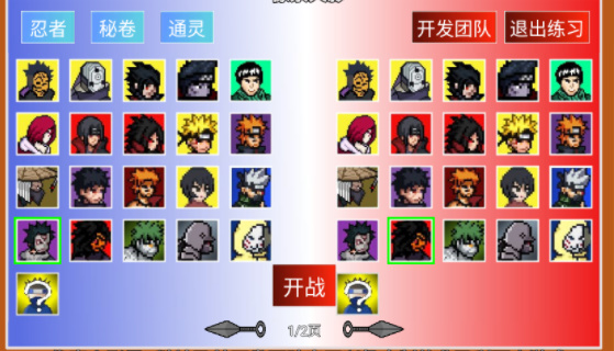 2.【格斗技能】各种角色通过像素风格呈现,同时设计忍具、通灵兽等额外的辅助技能。