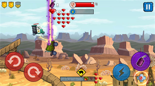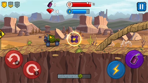 1、游戏采用横版操作的方式进行闯关,通过点击左侧的方向键按钮可以操作车辆完成旋转;