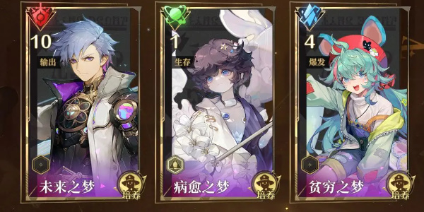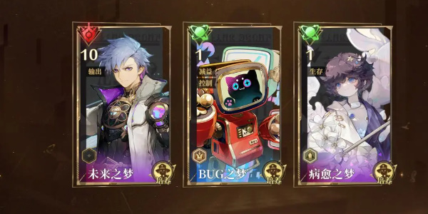 1、荒诞之梦和未来之梦这两个角色都是非常暴力的输出角色,所以这个角色玩家可以随便选着一位就可以,比较推荐大家使用这个荒诞。