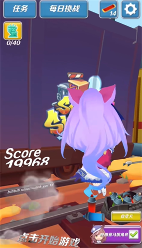 3、点击画面空白处即可正式开始挑战,游戏以竖版的形式进行,玩家需要避免碰触场景中的障碍以免被保安逮捕;