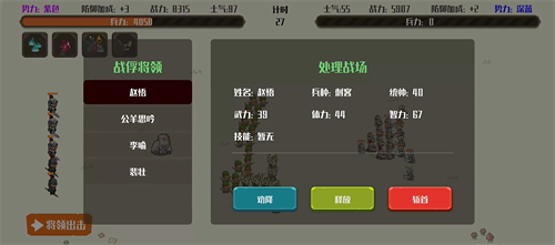 2、随机生成不同将领为玩家提供了多样的搭配空间,不同将领拥有独特的战术搭配风格等待体验;