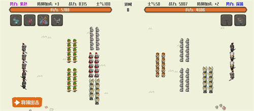 3、正式开始战斗后,战斗过程自动进行,根据玩家的布阵以及兵种相克与防御加成等因素进行战斗;