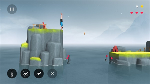 1、通过合理完成合适的按压操作完成相应的考验,通过玩家按压的时间控制角色的跳跃力度,同时起跳后长按可以进行空中翻转;