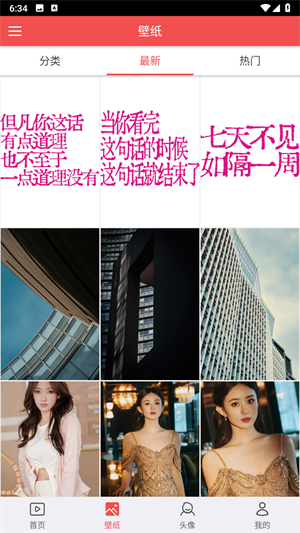 2、壁纸涵盖了广泛的分类,包括主屏、美女、热门影视、动漫、卡通、摄影、文字、风景等等,十分的多样。