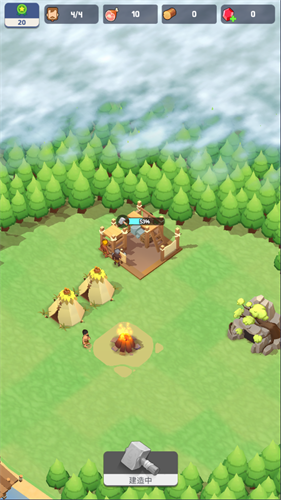 1、进入游戏后,玩家需要点击空地,首先进行房子的建设以及篝火的布置;