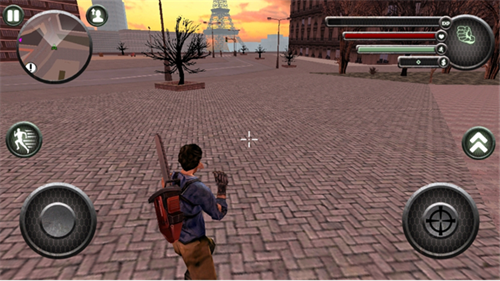 1、进入游戏后,玩家将以第三人称视角操作主角在城市场景中进行移动,尝试与不同敌人进行战斗;