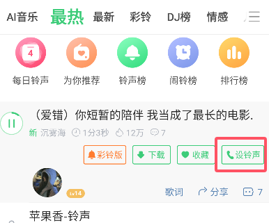 1、登录铃声多多app以后,在首页找到自己想要设置的铃声。