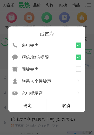 【铃声】可以一键将喜欢的音乐设置为手机铃声、通知音或短信铃声,使用操作非常的简单方便。