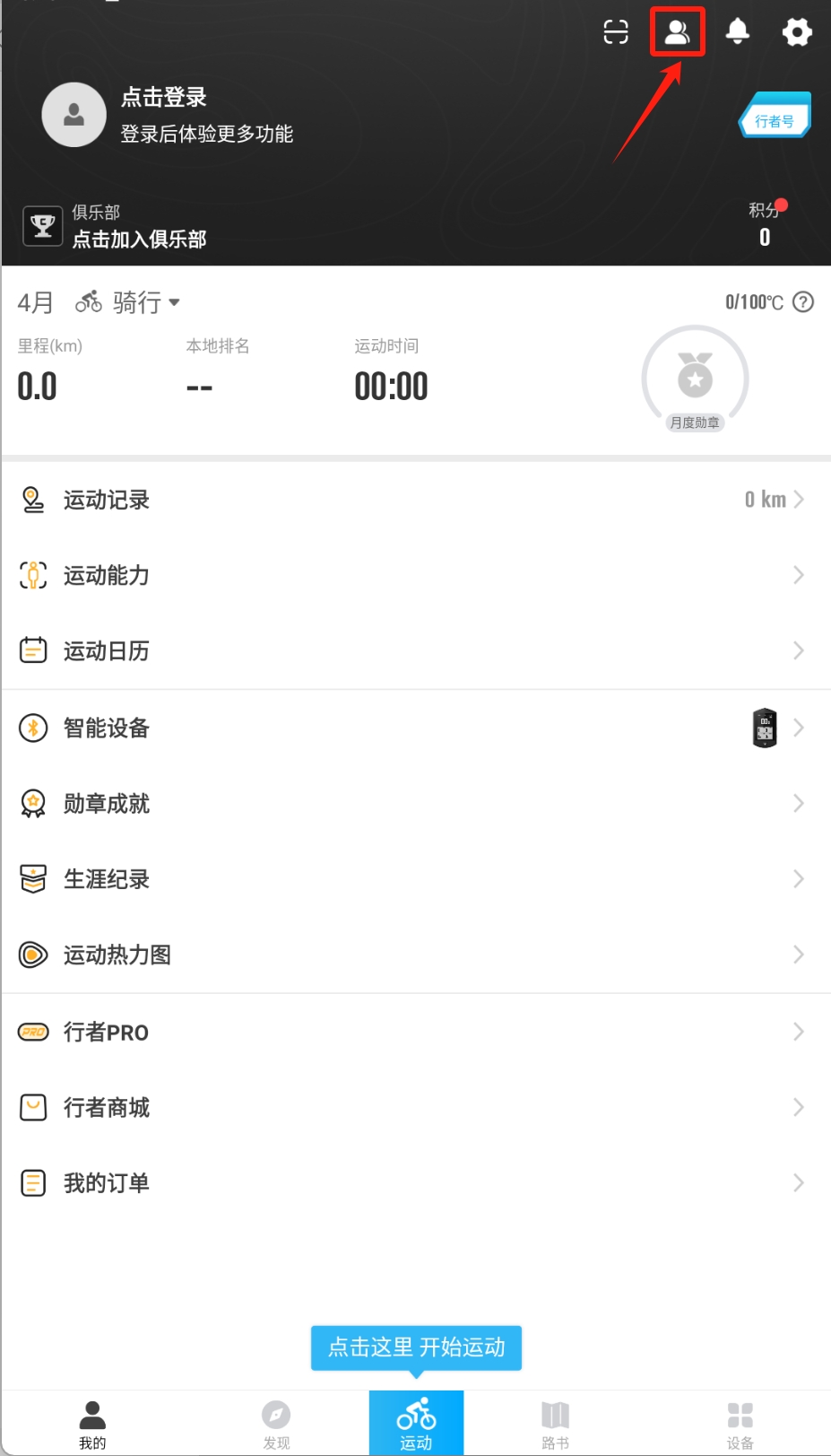 1、在行者骑行app我的页面中,点击右上方的好友功能。