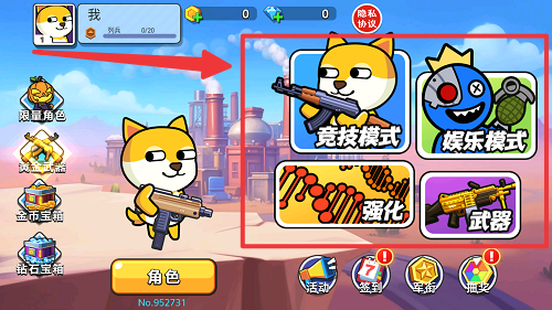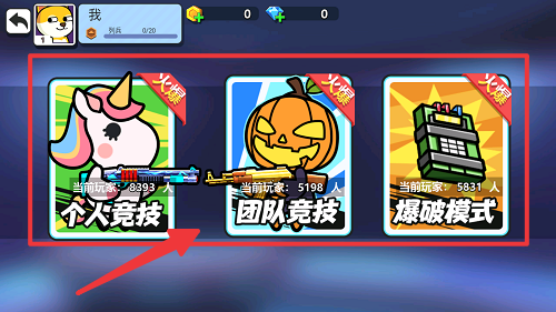 1、打开枪战大乱斗2app,进入游戏页面,右边可以选择游戏模式。